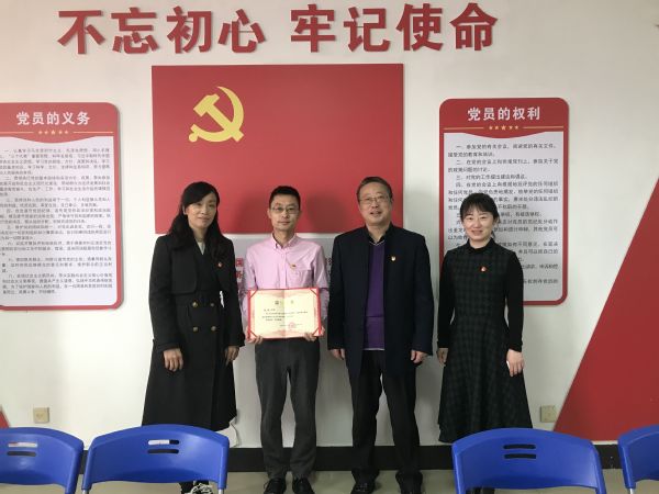新闻中心讯(特约记者 刘璐)3月7日上午,武汉市洪山区青菱街道黄家湖社区党总支书记马丽君、副书记李先梅来到bat365平台官网,为学校应用技术学院海鹏同志颁发了黄家湖社区2022年第四季度党员“下沉之星”荣誉证书。bat365平台官网副校长左宗文参加了证书颁发仪式。