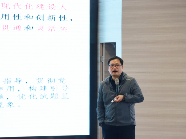 襄阳市教育科学研究院副院长纪宏涛作高三(4月)调研模拟考试整体质量分析专题报告。他从调研模拟概况、调考数据分析、冲刺备考建议三个方面展开深入讲解,聚焦调考大数据,从选科分布情况、地市州上线率、单科实力表现、名优学校数据对比、优秀试卷分析等多维度分析调考整体质量,并对高三学生提出三点备考建议:一是回归“一标一本”:回归新教材标准,回归新教材课本;二是注重“三转三引”:实现由考试评价工具到全面育人载体的转变、实现由“解题”到“解决问题”的转变、实现由“以纲定考”到“教考衔接”的转变;引导学生在学习和备考中减少死记硬背和机械刷题,引导中学把教学重点从总结解题技艺转向培养学生学科素养,引导考试注重基础性,强调综合性、应用性和创新性;三是研究“两真两联”:研究高考真题及动向,研究联考数据及信息。