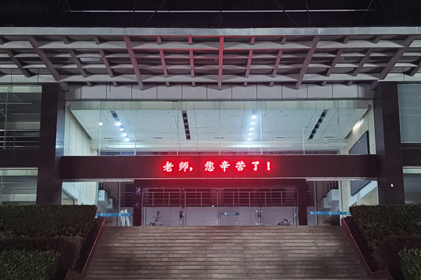 学校图书馆、综合楼、外语艺术楼、实验教学中心四个教学区域通过LED字幕滚动方式为教师亮灯,亮灯主题词为“躬耕教坛,强国有我”“祝全体教师节快乐!”“老师,您辛苦了!”以亮灯的形式向全校广大教师致以节日问候和崇高敬意,营造良好氛围。