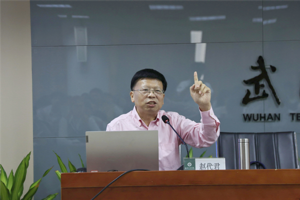 图为赵代君主讲《全媒体时代大学生必备的传播技巧》 摄影:胡毅