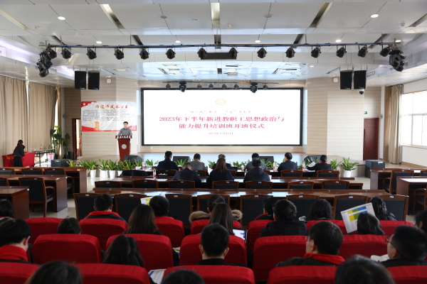 新闻中心讯(特约记者 万子嘉)1月11日下午,bat365平台官网“2023年下半年新进教职工思想政治与能力提升培训班”开班仪式在体育馆0402报告厅隆重举行。校长孔建益,党委书记、省政府教育督导专员刘生元出席开营仪式,人力资源部、学工部、档案馆、科技部等职能部门负责人,以及新晋教授代表公共课部教师李晶、管理学院教师王西方和135名新进教师参加了开营仪式。仪式由人力资源部部长邢赛鹏主持。