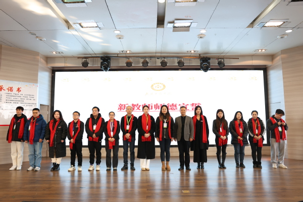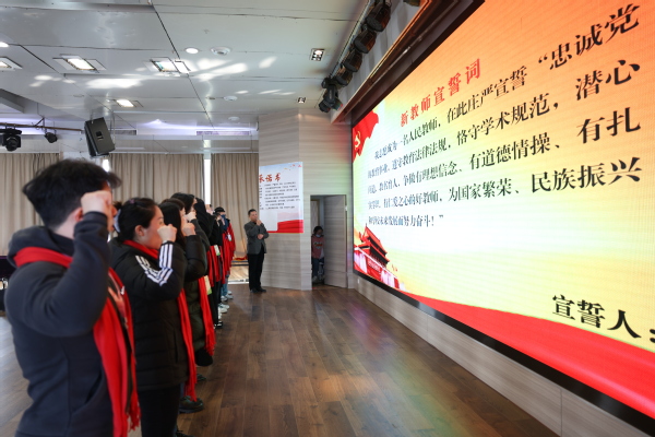 图为刘生元书记带领大家进行新教师入职宣誓 摄影:芮雨欣