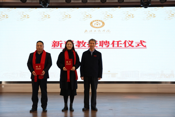 图为孔建益校长为公共课部李晶、管理学院王西方颁发聘书 摄影:芮雨欣