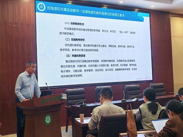 实验教学中心副主任毛志山教授以“校级虚拟仿真实验教学一流课程虚拟教研室建设”为主题,分享了校级虚拟仿真实验教学一流课程虚拟教研室建设的背景及要求、思路及举措。该虚拟教研室是信息化时代学校新型基层教学组织建设的重要探索,其建设工作展现了新思路、新方法和新范式。