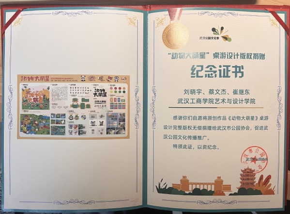 图为《动物大萌星》桌游设计版权捐赠纪念证书