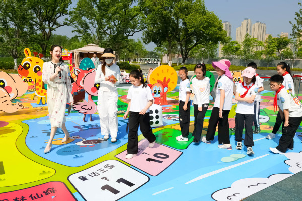 在桌游体验环节,20组亲子家庭热情参与,他们在活动场地上以家庭为单位,通过掷骰子和回答野生动物知识的方式完成互动挑战。“五一假期特意带孩子来武汉玩,今天参与这个互动游戏真是意外之喜,收获满满,孩子玩得特别开心!”来自湖南省长沙市的王先生,牵着7岁的女儿开心地说道。现场还设置了巨型棋盘地贴、萌版动物立绘打卡点等互动装置,游客们纷纷拍照留念,气氛热烈。