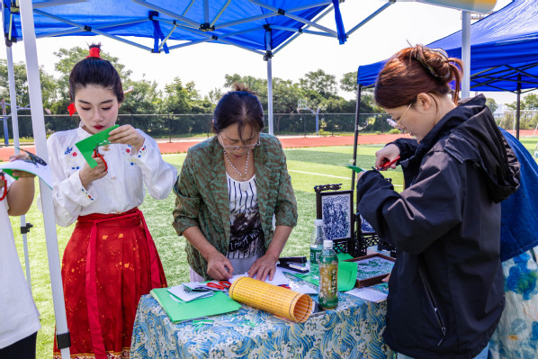 开幕式结束后,非遗主题活动、旱地龙舟竞赛等文化活动,以及武术、舞龙舞狮、国风舞、汉服走秀等表演相继在学校田径场上火热开展,吸引了诸多市民和师生围观和参加。李瑞刚、喻政森、韩恒涛、孟秋会4位非遗传承人进校,为大家科普与展示了糖画、草编、面人、剪纸等传统民间手工艺术,广大市民和师生还在现场体验了射五毒、彩绘鸭蛋、漆扇、蹴鞠、皮影戏、太极拳、竹编、象棋、投壶、制作香囊与五彩绳、组装龙舟模型、写对联等丰富多彩的传统文化,沉浸式提前共度端午佳节。