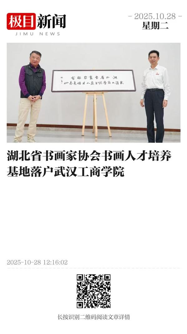 詹河焰表示,学校与湖北省书画家协会共建书画人才培养基地,是弘扬中华优秀传统文化、强化人文素养教育、践行“以美润心、以文化人”理念的重要举措,“基地将作为连接学校与社会、融通艺术与育人的桥梁,引导学生研习书画、陶冶情操、提升审美,为培养兼具专业能力与人文素养的优秀青年提供重要支撑。”