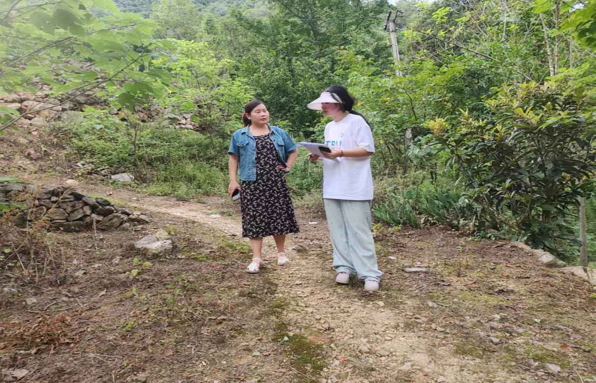 图为实践队员与当地工作人员一起调查监测户家庭土地情况 摄影:赵梦瑶