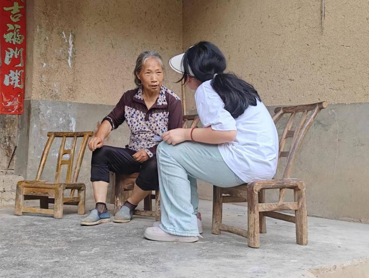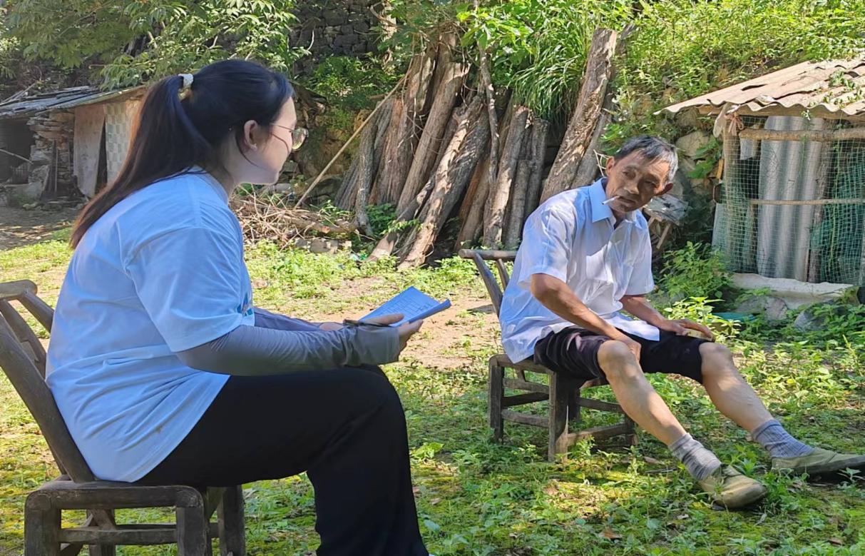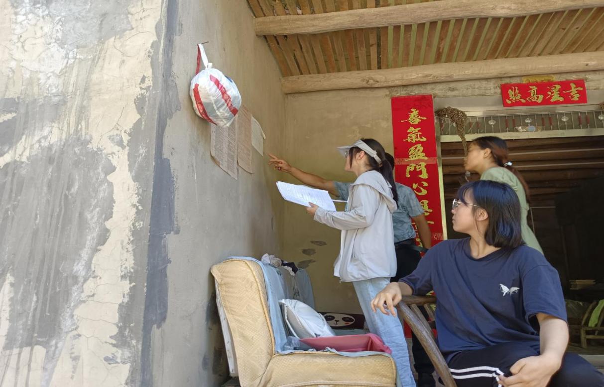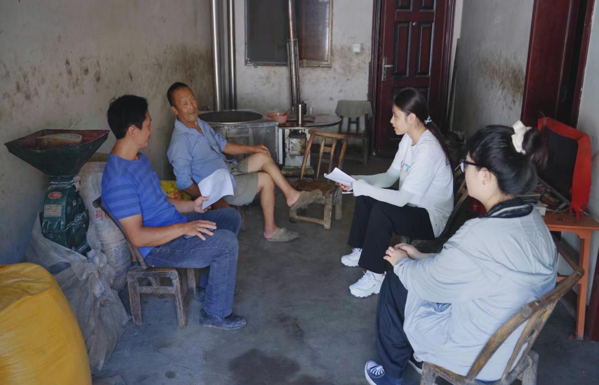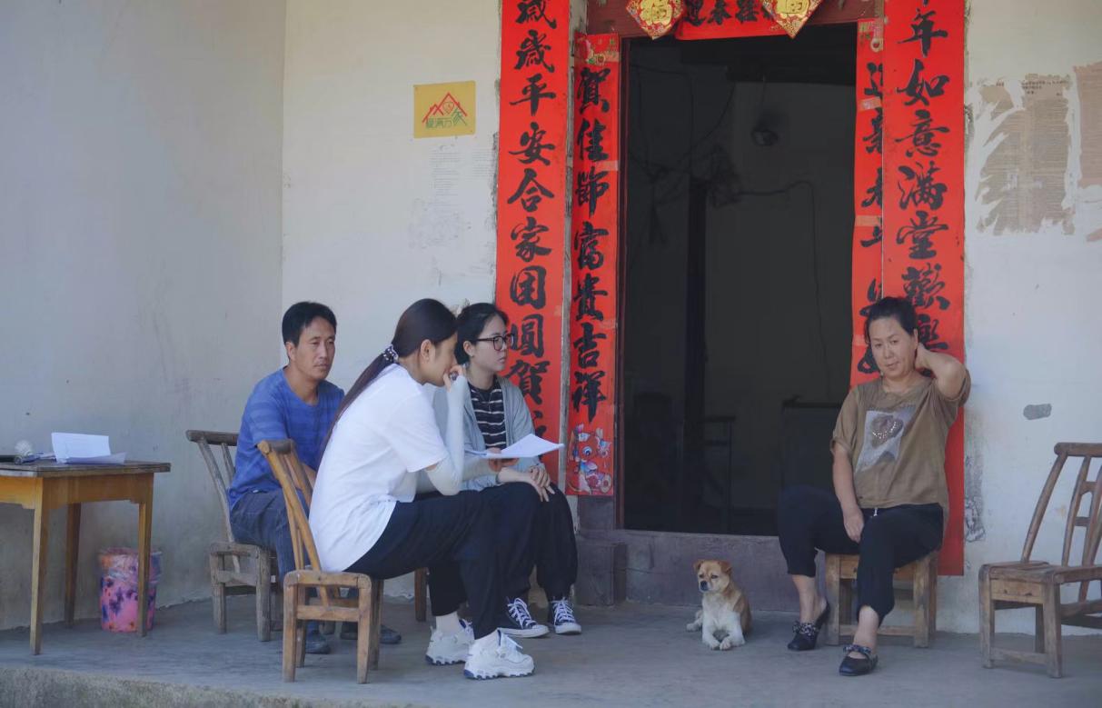 图为实践队员向监测户居民询问 摄影:赵梦瑶