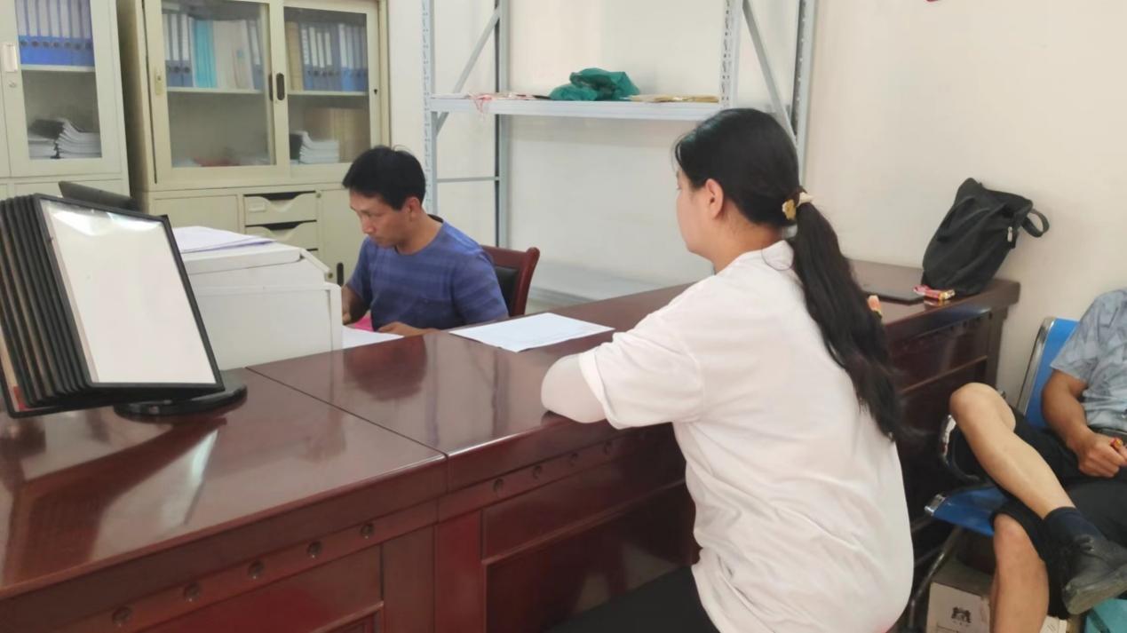 图为实践队员在村委会查询检测户资料 摄影:李雨萱