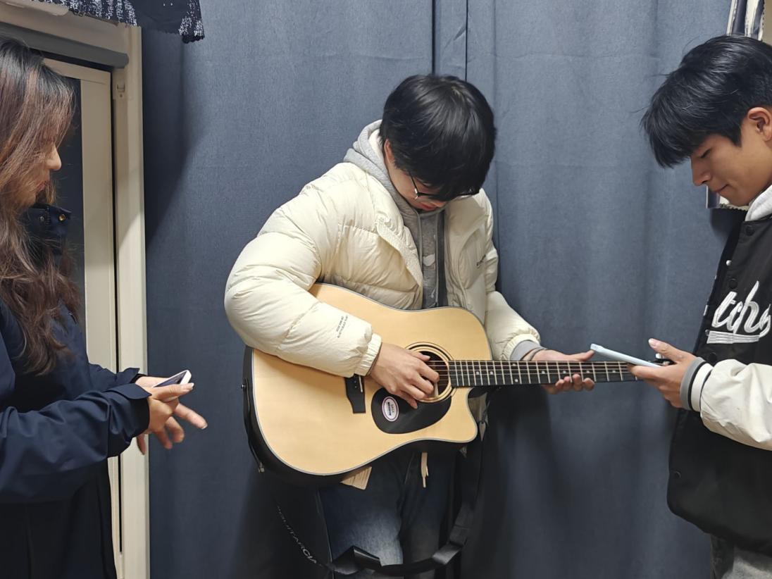 图为某宿舍成员的才艺展示 摄影:胡明卓