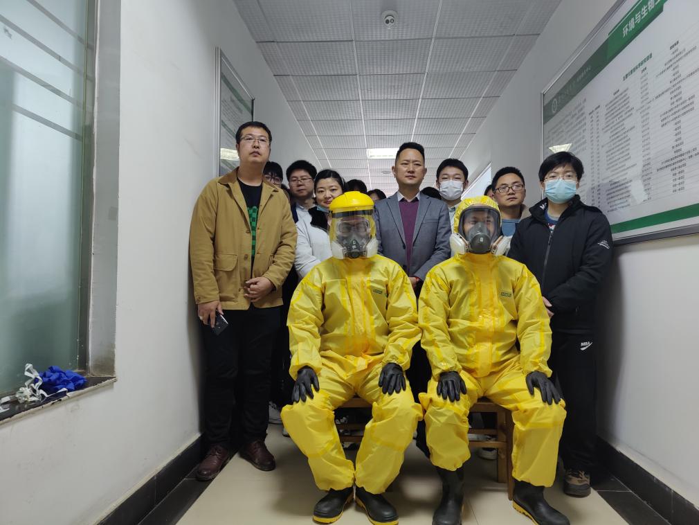 下午,为提高培训演练效果,让在场每位学生听得懂、看得清、学得会。演练过程让学生角色扮演实验室的相关人员参与其中,通过一边讲解一边示范,将危险化学品泄漏后实验人员个人救护、紧急动员、事故处置等应急处置规范化流程完整呈现。环生学院龚乃超老师、徐文广老师在演练中扮演应急处置小组成员,通过现场详细的展现了实验室安全防护设施的正确使用方法,以及应对危险化学品泄露的正确处置流程。