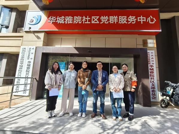 为更好的发挥环生学院党建、团建工作服务社会的功能,3月20下午,环生学院党总支副书记王强率学院分团委书记尹佳丽老师、学生党支部书记何丹老师、学院心理专员严琪老师等一行四人赴洪山区青菱街道华城雅苑社区开展“院区共建”合作洽谈工作。