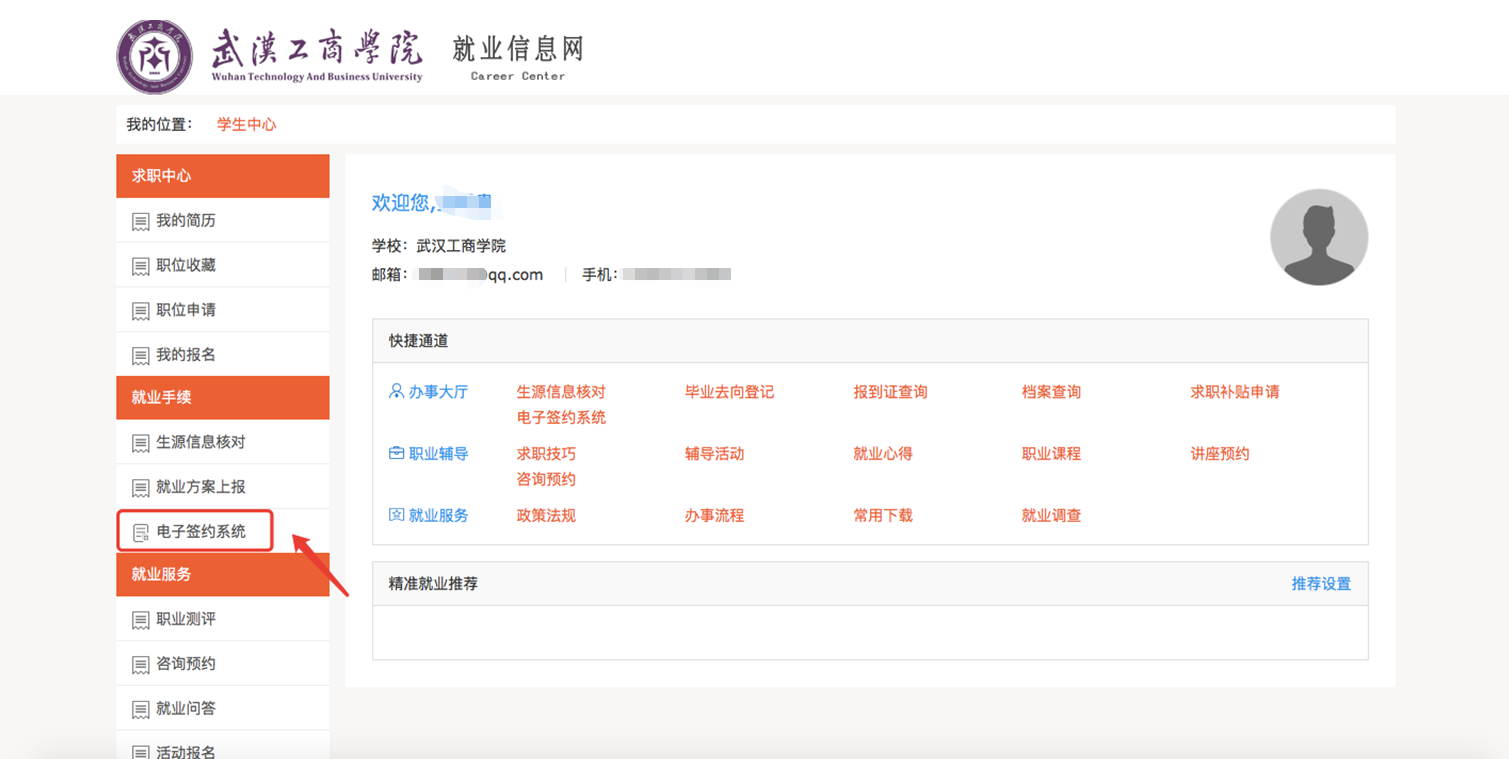 ①核心功能菜单:就业信息维护、网上就业市场、个人信息维护等皆需从此菜单栏及其子栏目点击进入详细页面后,再进行操作。