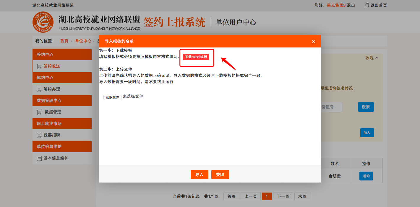 (1)在“签约发送”栏目点击“导入拟签约名单”,如图: