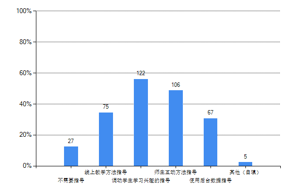 3.存在教师对学生学习情况的无法较好掌握的情况,建议教师通过积极分析教学平台有关学习数据(测试、视频学习、材料学习)、加强课堂(直播)互动、通过在线教学(辅助)平台(工具)进行专项学习讨论和日常交流等达到较好掌握学生学习情况;