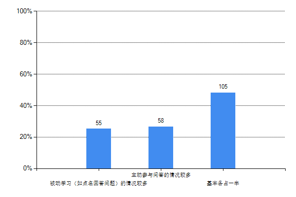 被动学习(如点名回答问题)的情况较多 | 55 | 25.23% |