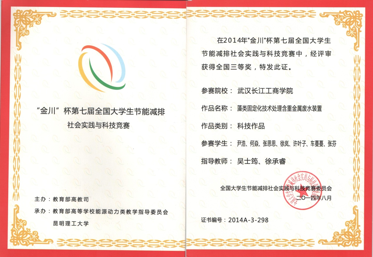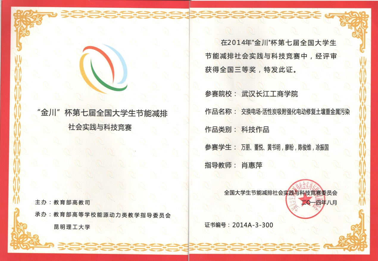34 | 2014 | 万朋 | 第七届全国大学生节能减排社会实践与科技竞赛 | 教育部高教司 | 三等奖 |