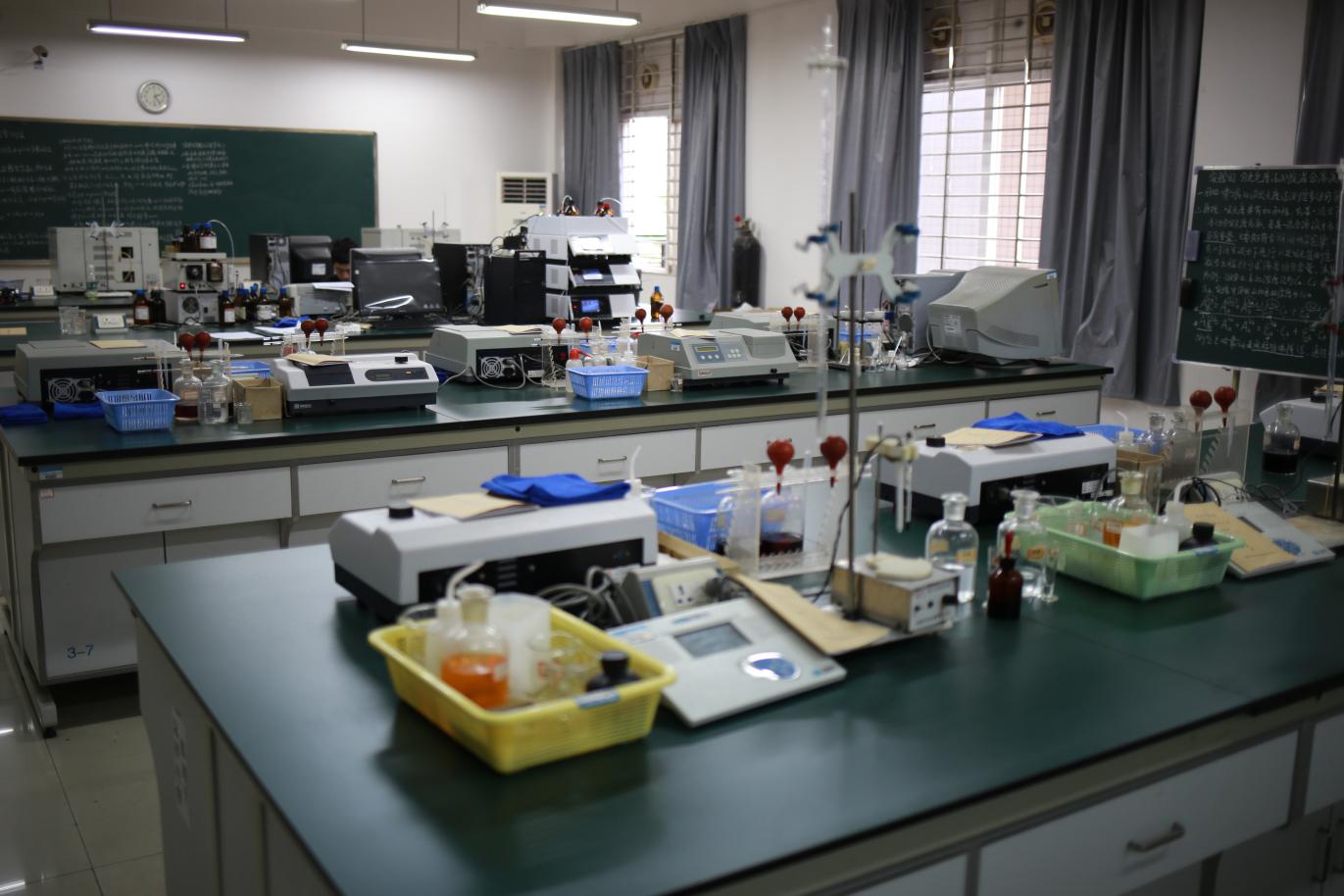 化学实验室建于2006年,实验室共10间,其中实验预备室2间,面积800平方米,教学科研仪器设备164台套。实验室主要承担环境工程、生物工程、生物制药等专业的实验教学任务和教师科研工作。承担实验课程有《无机及分析实验》、《有机化学实验》、《仪器分析实验》、《物理化学实验》、《化工原理实验》等共8门,实验项目有40个。实验室同时可接纳学生249人,年承担实验人时数约17920人时。