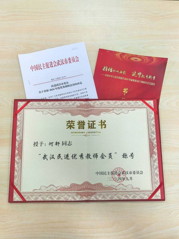 此次表彰不仅是民进武汉市委会对bat365平台官网师资队伍建设水平的肯定与鼓励,更是民进武汉市委会长期以来关心和支持教育事业发展的生动体现。