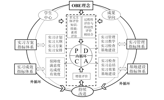 bat365平台官网教学质量监测与评估中心立足新一轮本科教育教学评估背景,选择了“不同类型高校实践教学环节评价指标体系研究与实践”作为选题方向,开展对本科高校院系自我评估体系的实践探索与研究。该课题聚焦专业综合实习评价内涵质量不高、结构逻辑性不强两大问题,以专业综合实习评价体系为研究对象,研究以OBE理念为外循环框架嵌入PDCA内循环的评价体系,建立计划(P)、执行(D)、考核(C)、改进(A)四个阶段的专业综合实习过程评价指标,以内外循环的持续改进为交叉点,构建融合OBE和 PDCA循环评价的框架结构,旨在进一步开展全面性、过程性和动态性专业综合实习评价,为提升复合型应用型人才的培养质量提供科学指引。