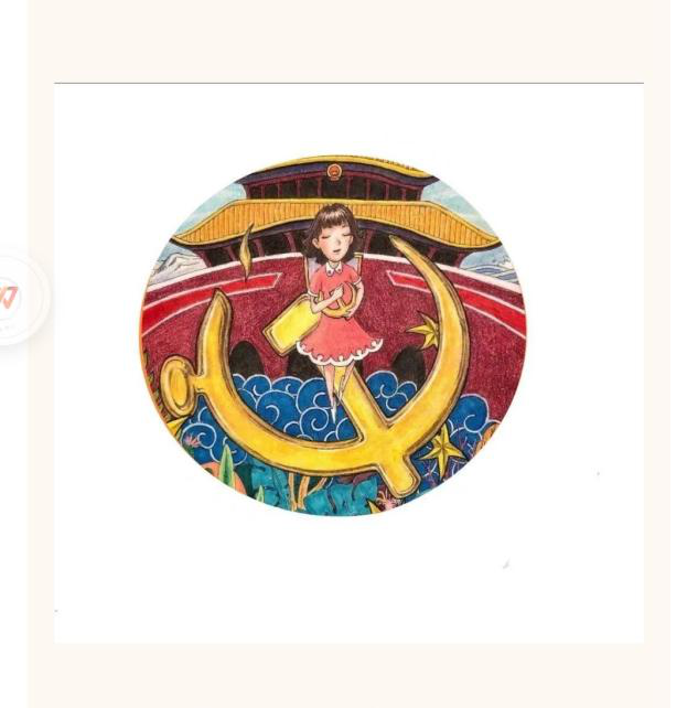 第一幅作品的理念:背景是北京天安门广场,这是新中国建立的地方,党徽在图片的中心位置,小女孩代表了当代青年,站着大党徽中间,手里捧着一个小的党徽,寓意着党在我们每个青年的心中。脚下踏着海浪,寓意着建党百年来,历经风雨,依旧不忘前行的初心。
