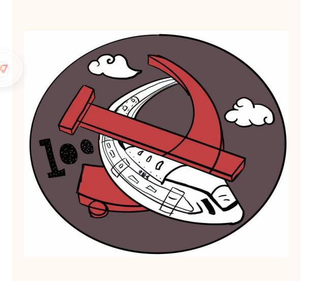 第二幅作的品理念:以红白两色为主调,红色的党徽是中国共产党革命精神的象征,是对理想和信念执着追求的力量之源。党徽是一个政党的纲领、宗旨、理念等的最直接最形象的反应。而白色的中国号体现出了中国科技的发展,将其交织在一起寓意着中国建党一百周年越来越好,直冲云霄。