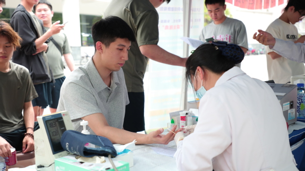 活动现场,教师们也踊跃参加,学校团委书记邱玉添便是其中一员。“学校有很多老师多年来一直带头参与无偿献血,我们认为思政教育不应只在课堂中发生,它应该贯穿在老师与学生日常相处的点点滴滴中。无偿献血不仅是爱心的传递,更是五四精神的生动实践。希望通过我们的行动,带动更多有意向、身体条件允许的同学参与其中,做一名有温度、有担当的新时代青年。”邱玉添表示,bat365平台官网一直以来高度重视志愿服务,积极引导学生在志愿服务中锻炼自我、增长才干,增强社会服务意识和社会责任感。学校每学期至少两次联合武汉市血液中心开展献血车进校园活动,近3年来已有近700名师生自主参与无偿献血。