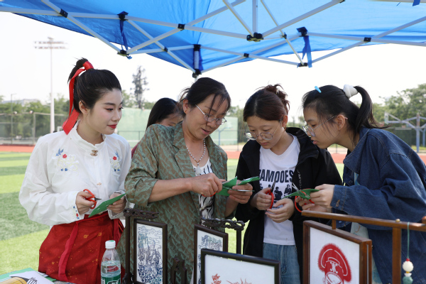开幕式结束后,非遗主题活动、旱地龙舟竞赛等文化活动,以及武术、舞龙舞狮、国风舞、汉服走秀等表演相继在学校田径场上火热开展,吸引了诸多市民和师生围观和参加。李瑞刚、喻政森、韩恒涛、孟秋会4位非遗传承人进校,为大家科普与展示了糖画、草编、面人、剪纸等传统民间手工艺术,广大市民和师生还在现场体验了射五毒、彩绘鸭蛋、漆扇、蹴鞠、皮影戏、太极拳、竹编、象棋、投壶、制作香囊与五彩绳、组装龙舟模型、写对联等丰富多彩的传统文化,沉浸式提前共度端午佳节。
