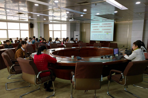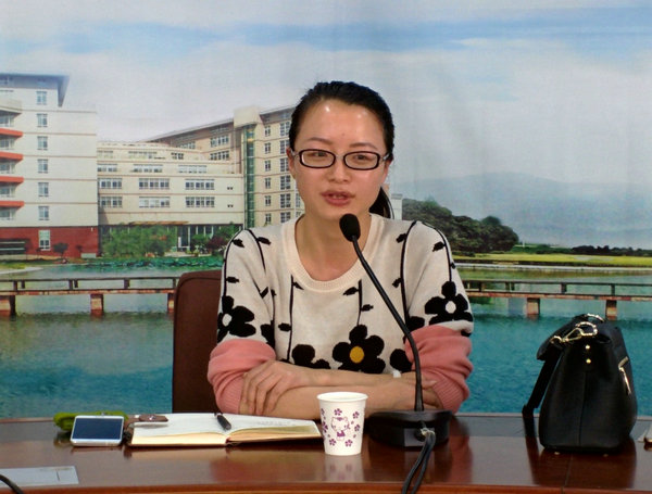 图为总支书记蔡菁在主持讲座 摄影:林倩