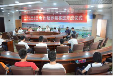 胡成松副院长勉励在场的学生说道。随后,他介绍精英班的后续安排,除了已排定的上课时间不变之外,周三、四下午所有学生都要求去实验室做训练。为了让学生们更好的参与实践,学院和研究院特意在综合楼1121开设实验室,供同学们做项目时使用。胡成松副院长对精英班的学生们说道:“相对于其他同学来说,你们毕业之后会早一步找到工作,薪资待遇也会偏高,在企业的发展前景也会好,这就是你们在精英班学习的动力。”该精英班班长黄烟彬参加完开办仪式,激动地说:“精英班的开办,让我们可以提前参与项目的操作,从而更好地将理论与实践联系起来,从而提高自己的综合能力。我很庆幸我加入了精英班,作为班长,我会带好头,奋发向上,努力拼搏。”
