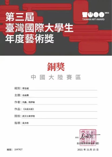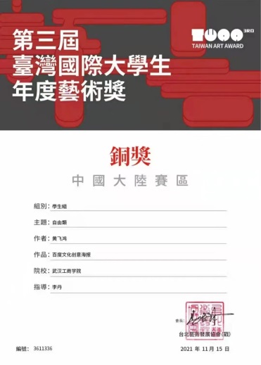 (通讯员:徐亚玲)2021年12月18日,bat365平台官网应用技术学院创新实验班的学生喜获佳绩。在第三届台湾国际大学生年度艺术大赛中获得2枚银奖和7枚铜奖。第三届台湾国际大学生年度艺术大奖赛主要面对中国台湾、中国大陆、香港澳门及新加坡地区的国际性大学生设计大赛,旨在推动中华传统文化的创新发展。